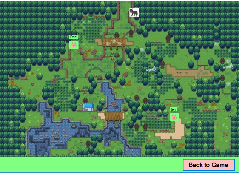 The list of actions is a domain model representation for the screen – i.e.what is needed for each screen. The game play, inventory and map is mapped to Unity for each situation or “scene”.